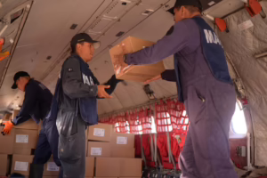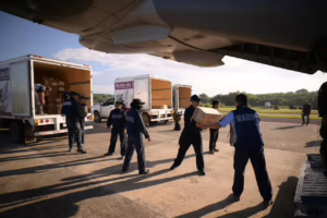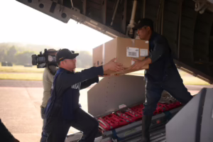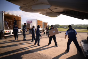 Poza Rica., Ver., miércoles 15 de octubre de 2025.- En respuesta a las fuertes lluvias que afectaron a diversos municipios, el Gobierno de Veracruz recibió del IMSS-Bienestar más de 18 toneladas de medicamentos y material de curación para Pánuco, Poza Rica, Álamo y localidades de difícil acceso, como El Higo.