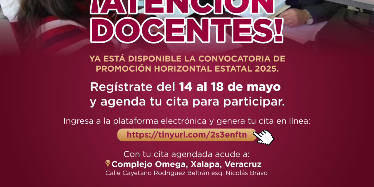 Xalapa, Ver., sábado 17 de mayo de 2025.- El Gobierno del Estado, a través de la Secretaría de Educación de Veracruz, recuerda a las y los maestros que la convocatoria para el proceso de Promoción Horizontal por Niveles con Incentivos en Educación Básica 2025 estará disponible hasta el 18 de mayo.