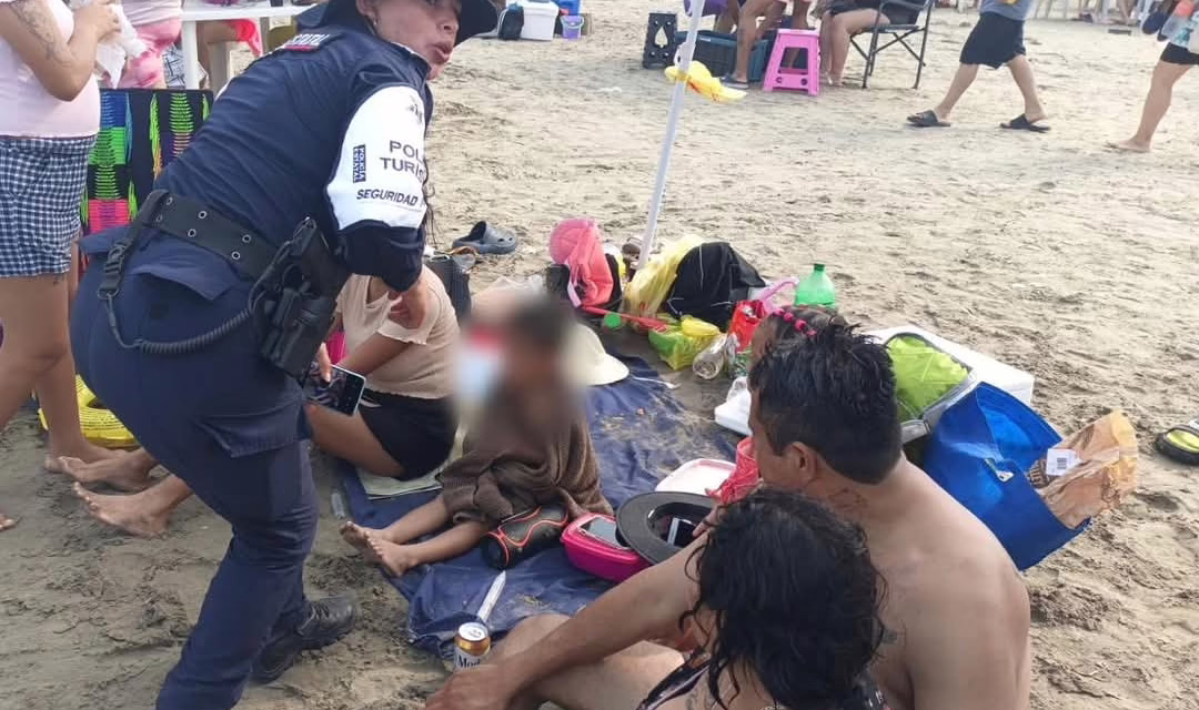 Veracruz. 18 de abril del 2025. – En el municipio de Veracruz durante el Operativo Semana Santa2025 la Policía Turística brindó atención médica a un menor que sufrió la picadura de una medusa, en zona de playa.