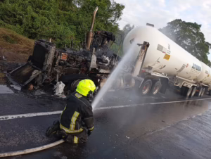 Veracruz. 19 de enero del 2026.-La autopista Córdoba–Veracruz permanece cerrada a la circulación a la altura de la caseta de Paso del Toro, con dirección a la ciudad de Córdoba, luego de que una pipa comenzara a incendiarse.