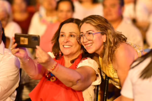 Papantla, Ver., miércoles 19 de marzo de 2025.- La gobernadora Rocío Nahle García, cerró el primer día del festival Cumbre Tajín 2025, ‘Tachanán, la siembra para el mundo’, en el Nicho de la Música donde se presentaron Las Tres Grandes, Tania Libertad, Guadalupe Pineda y Eugenia León, ante un lleno total y un público alegre y entregado.