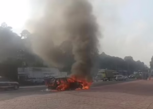 Xalapa, Ver. 20 de mayo del 2025.- La tarde de este martes un vehículo comenzó a incendiarse sobre la carretera Xalapa – Perote, a la altura del restaurante Merendero Darío en La Joya.