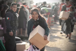 “Venimos a recibir las despensas para los abuelitos, gracias por apoyarnos con estos productos y con las cobijas; con las despensas preparamos comida para ellos, esperamos que nos sigan mandando este apoyo”, manifestó Laura Quequihua, de la comunidad de Acatitla, al agradecer el respaldo destinado a las personas adultas mayores.