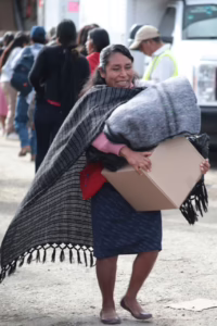 “Es la primera vez que nos llega este apoyo y nos sirve de mucho, donde vivimos las temperaturas están por abajo de los 9 grados”, agradeció la señora Fidencia Ramírez Inés, de Tepantla, municipio de Astacinga, donde la Caravana llevó mil 087 despensas y 2 mil 320 cobertores para 16 comunidades.