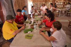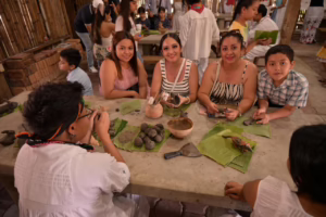 Aquí, las y los visitantes conocen de cerca el proceso tradicional del modelado en barro, una técnica heredada de generación en generación. El proceso inicia con la preparación de la tierra, continúa con el secado y el bruñido, y culmina con la quema de las piezas, explica la artesana.