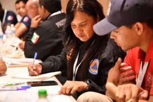 En paralelo, más de mil 300 personas participaron en seis capacitaciones simultáneas enfocadas en prevención, coordinación y atención a la población ante lluvias y ciclones tropicales. Estas sesiones estuvieron dirigidas principalmente a personal de las direcciones municipales de Protección Civil, especialmente a quienes enfrentarán por primera esta temporada.