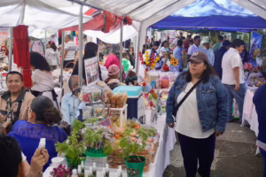 Los módulos de exhibición, que permanecerán hasta este viernes 27 en la plaza Xallitic, permiten a las y los microempresarios establecer redes de contacto y vinculación directa con el consumidor final, eliminando intermediarios y maximizando sus márgenes de ganancia.