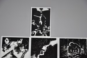 La muestra se compone de 103 piezas, de pequeño y mediano formato, con técnicas mixtas que abarcan tanto temas locales como globales y busca dos objetivos primordiales: el establecimiento de historias alternativas y la materialización de un arte a “contratiempo”, es decir, un arte opuesto al acelerado imperialismo cronológico de la globalización.