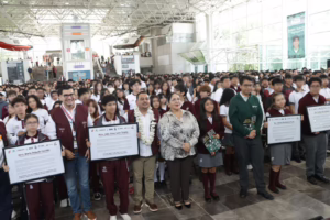 La titular de Educación, Claudia Tello Espinosa, recordó que antes del 2018 las juventudes eran rezagadas y ello motivó el incremento en la deserción escolar; en la actualidad, agregó, el compromiso es acompañar a las niñas, niños, adolescentes y jóvenes en su trayectoria académica, desde educación inicial hasta la licenciatura, y para ello se cuenta con becas acordes al nivel educativo.