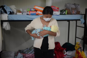 Poza Rica, Ver., domingo 26 de octubre de 2025.- “Después de darnos la atención médica en hospitales regresamos aquí, acompañadas de enfermeras y nos están dando lo esencial tanto para nosotras como para los bebés”, relató Anabel Bautista Bautista, originaria de la localidad de Huiztipan del municipio de Ilamatlán, una de las dos mujeres que dieron a luz en el refugio temporal habilitado en la Casa del Migrante de esta ciudad.