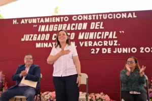 Minatitlán, Ver., viernes 27 de junio de 2025.- La gobernadora Rocío Nahle García encabezó la inauguración del Juzgado Cívico Municipal de Minatitlán, el primero en su tipo en Veracruz, marcando un avance significativo en la implementación de un modelo de justicia cívica moderna, oral, accesible y transparente.