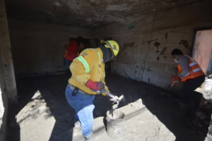 Los expertos en el control de incendios forestales, hoy aplican su disciplina y experiencia en la limpieza de lodo y retiro de enseres domésticos; su labor refleja profesionalismo, resiliencia y, sobre todo, solidaridad y humanidad para que las familias pozarricenses puedan retomar poco a poco su vida cotidiana en la colonia Las Granjas.