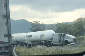 El percance ocurrió a la altura de la desviación hacia la localidad de Arroyo Agrio. De acuerdo con los primeros reportes, un tractocamión y un automóvil particular colisionaron de manera lateral, quedando ambas unidades obstruyendo parte de los carriles de rodamiento.