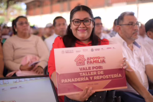 Durante su intervención, subrayó que el objetivo es fortalecer a las familias, especialmente a las mujeres, quienes pueden trabajar desde casa, cuidar a sus hijos y contribuir a prevenir que los jóvenes caigan en conductas antisociales, como parte de la estrategia para atender las causas de la violencia.