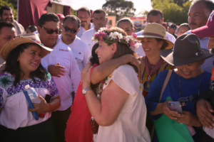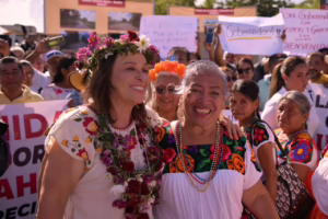 A nombre de los municipios beneficiados, la alcaldesa de Álamo, Blanca Lilia Arrieta Pardo agradeció la presencia de la Mandataria, destacando que su cercanía representa voluntad política real y respeto hacia las raíces de los pueblos originarios.