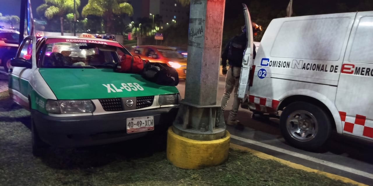 Fue en el carril con dirección a Plaza Crystal, en donde el operador del taxi con número económico XL-658 presentó un problema médico, lo que ocasionó que se subiera a la jardinera e impactara un poste.