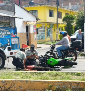 Paramédicos se trasladaron al sitio del accidente para atender al conductor de la motocicleta, quien presentaba lesiones.