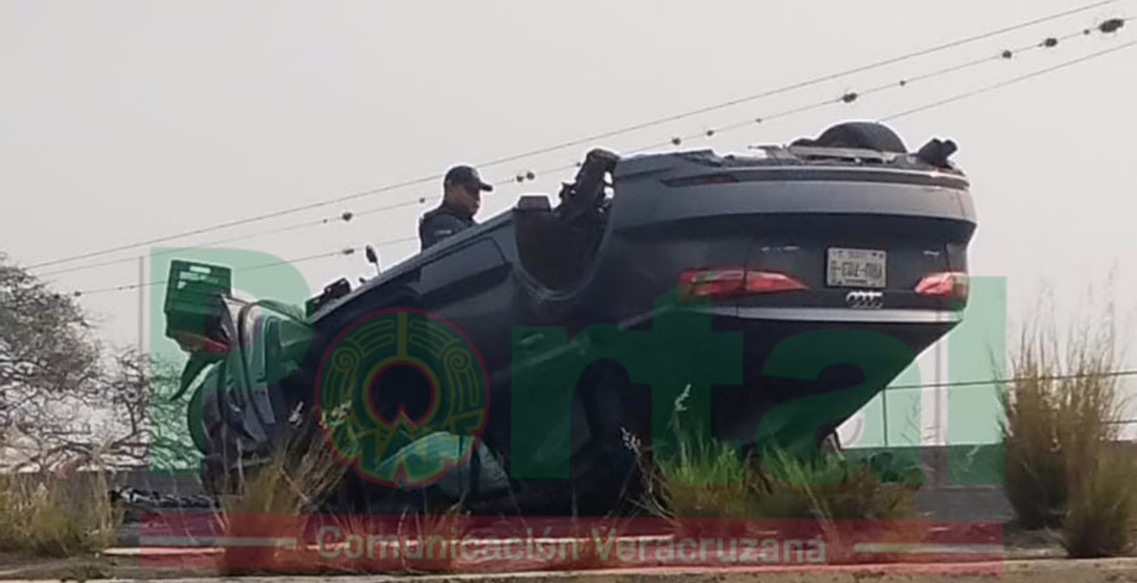Emiliano Zapata, Ver. 03 de mayo del 2025.- Esta mañana se reportó la volcadura de un vehículo marca Audi color gris sobre la carretera Xalapa – Veracruz, a la altura del Club de Golf.