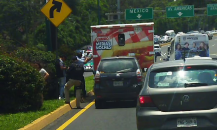 También en la avenida Lázaro Cárdenas, a la altura del distribuidor vial de La Araucaria, un vehículo particular color rojo y una motocicleta se encuentran bloqueando parcialmente la vialidad en el carril con dirección a Veracruz.