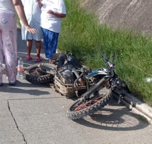 En el percance una mujer embarazada, junto con un menor circulaban en una motocicleta, cuando una camioneta de la empresa Gas Express los golpeo y sufrieron una caída.
