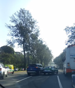 El percance tuvo lugar a la altura de la zona conocida como la Estancia Garnica e involucró a dos unidades: una camioneta marca Nissan tipo XL un motociclista y un taxi con número económico Xl 10021