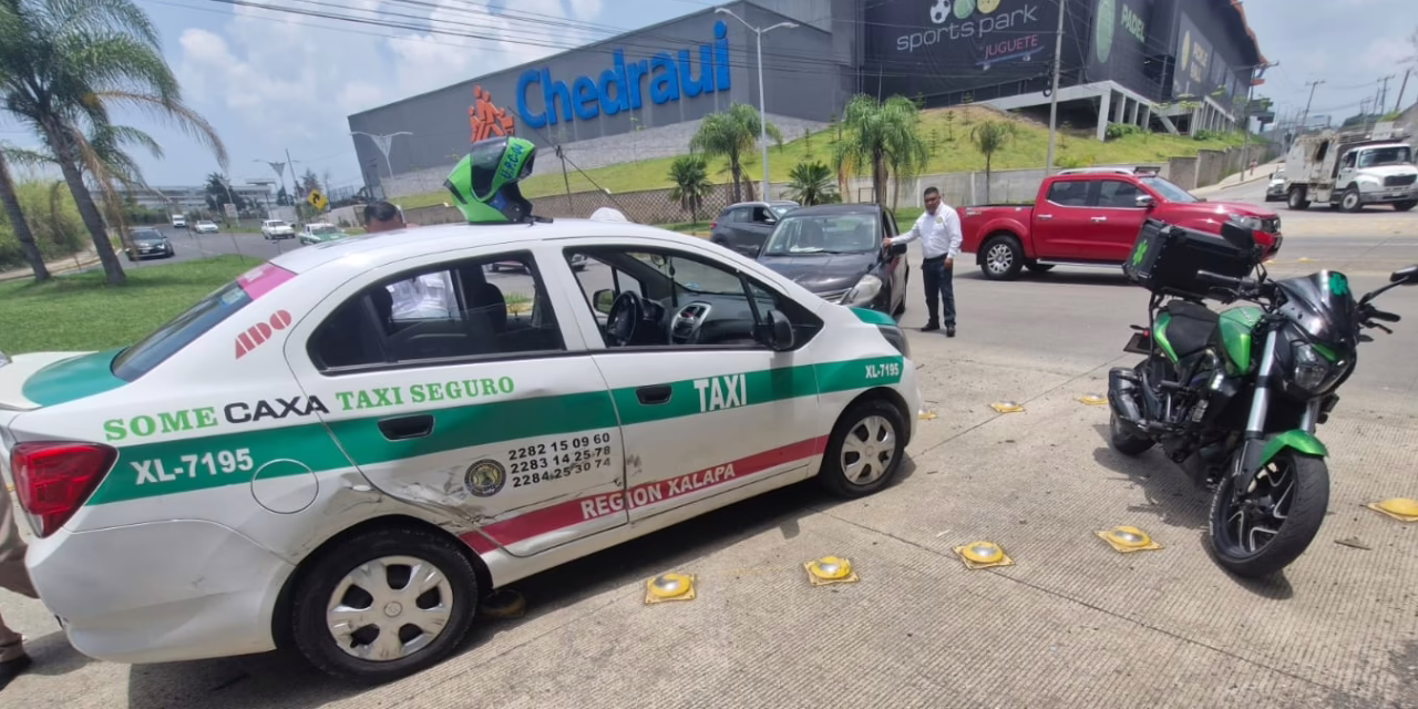 Xalapa, Veracruz a 05 de junio del 2025 – La mañana de este jueves se registró un accidente de tránsito sobre la carretera Xalapa-Veracruz, a la altura de Plaza El Juguete, que involucró a un taxi de Xalapa con número económico 7195 y un vehículo particular Nissan Tiida color negro.