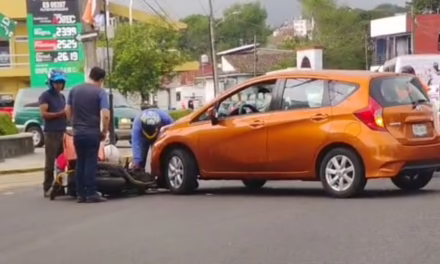 En el percance se vieron involucrados una motocicleta y un taxi con número económico XL – 6552, al lugar se trasladaron elementos paramédicos para auxiliar al motociclista.