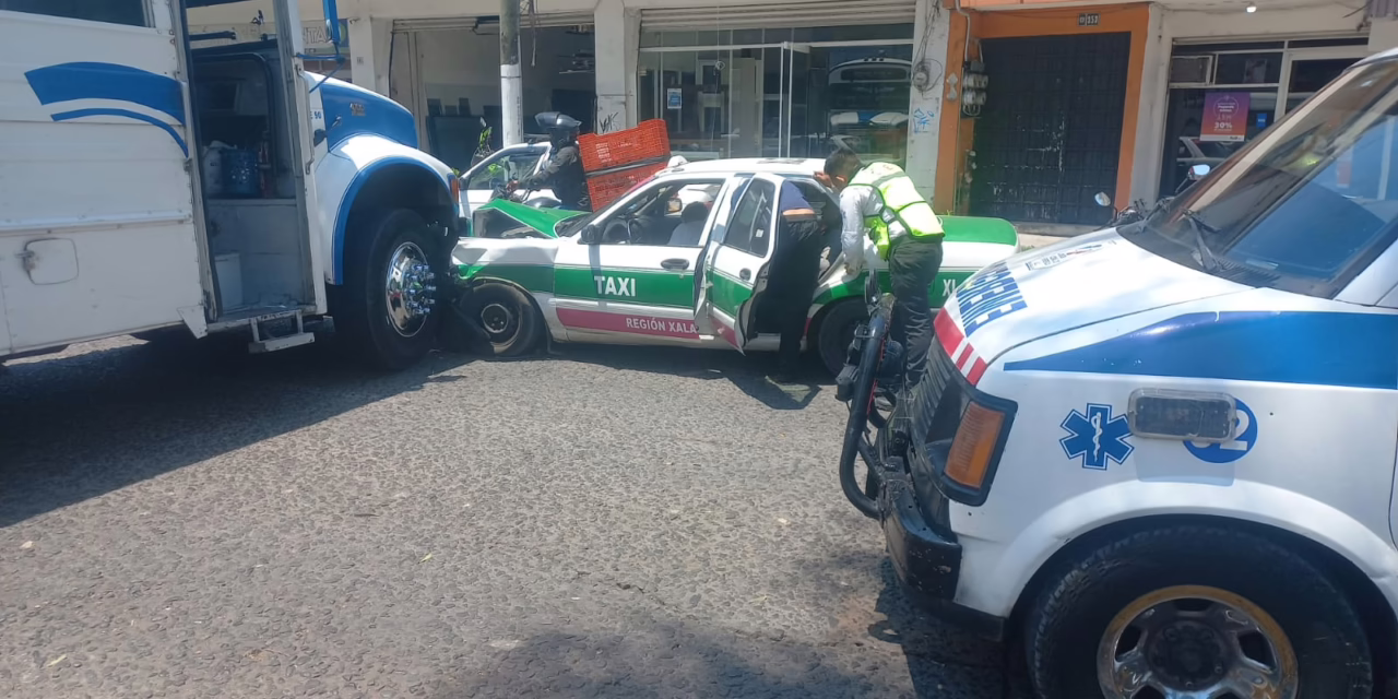 El incidente, registrado alrededor de las 11:30hrs de este día, involucró a un autobús de pasajeros de la línea ATB y un taxi con número económico XL – 2768.