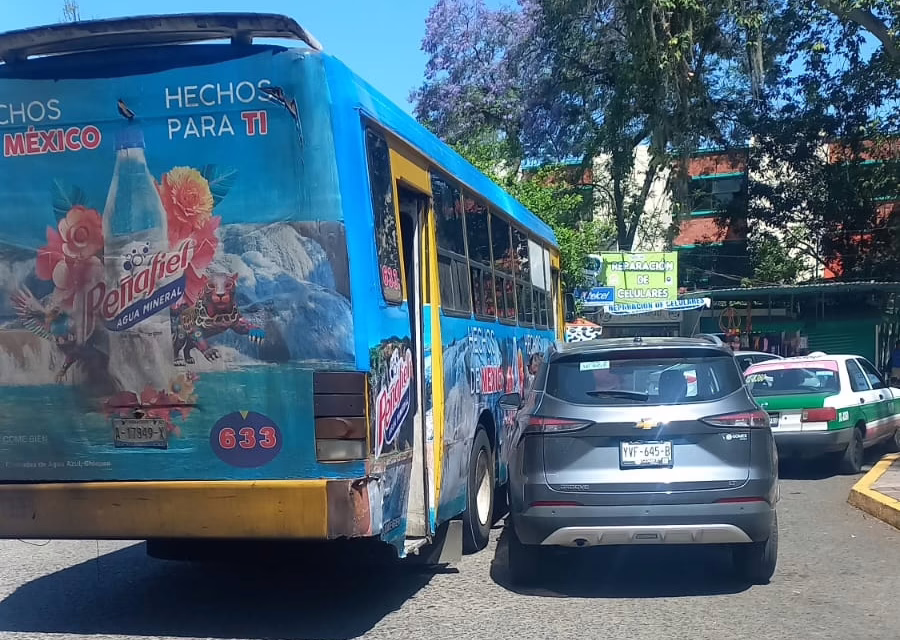 Xalapa, Ver. 09 de abril del 2025.- Cerca de las 11 de la mañana de este miércoles se registró un accidente de tránsito en la zona de Los Sauces, en el percance se vieron involucrados una camioneta marca Chevrolet tipo Groove color gris y un camión de pasajeros.