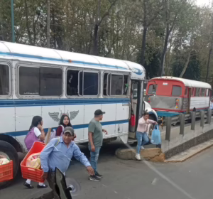 ​Los usuarios del camión de pasajeros, tuvieron que bajar de la unidad.