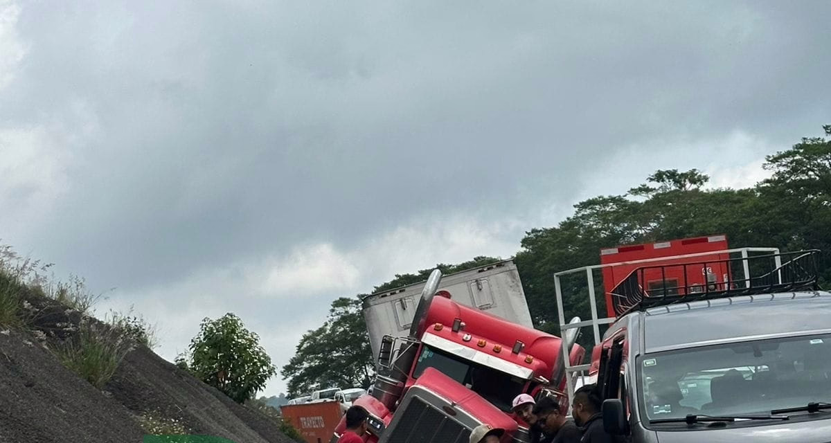Fue en el carril con dirección a la capital del Estado, en donde el conductor de la unidad pesada perdió el control y se subió a un montículo de tierra y piedra.