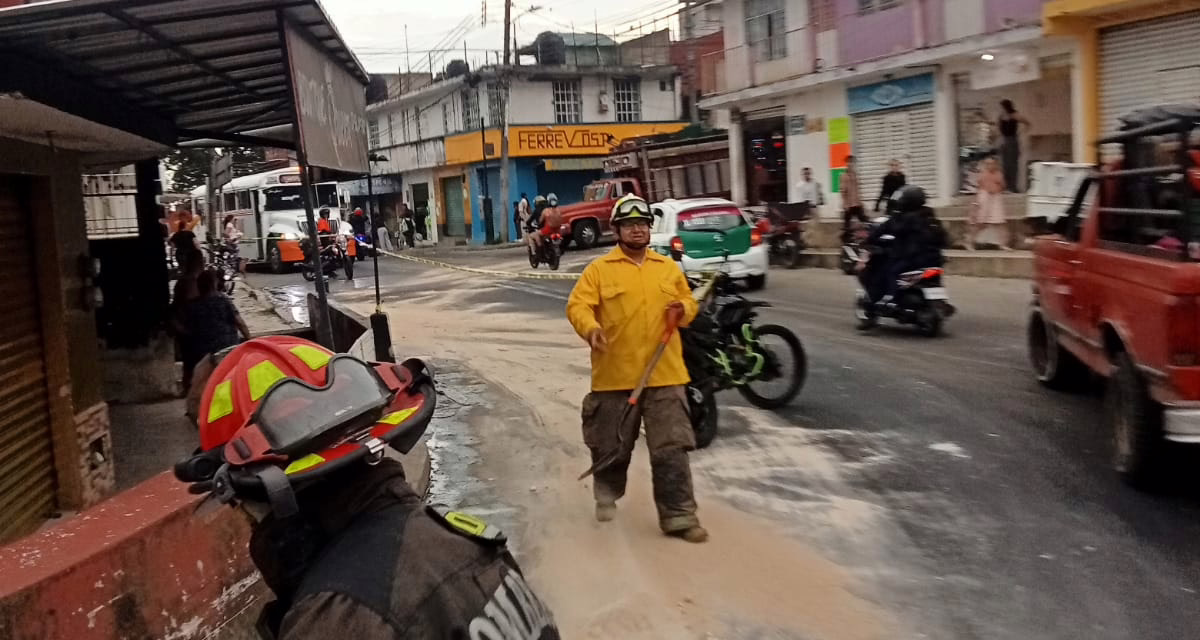 A bordo de la Unidad número 2, elementos del Cuerpo de Bomberos de Xalapa se trasladaron al lugar para contener la situación y para prevenir posibles accidentes realizaron la limpieza de la calle.