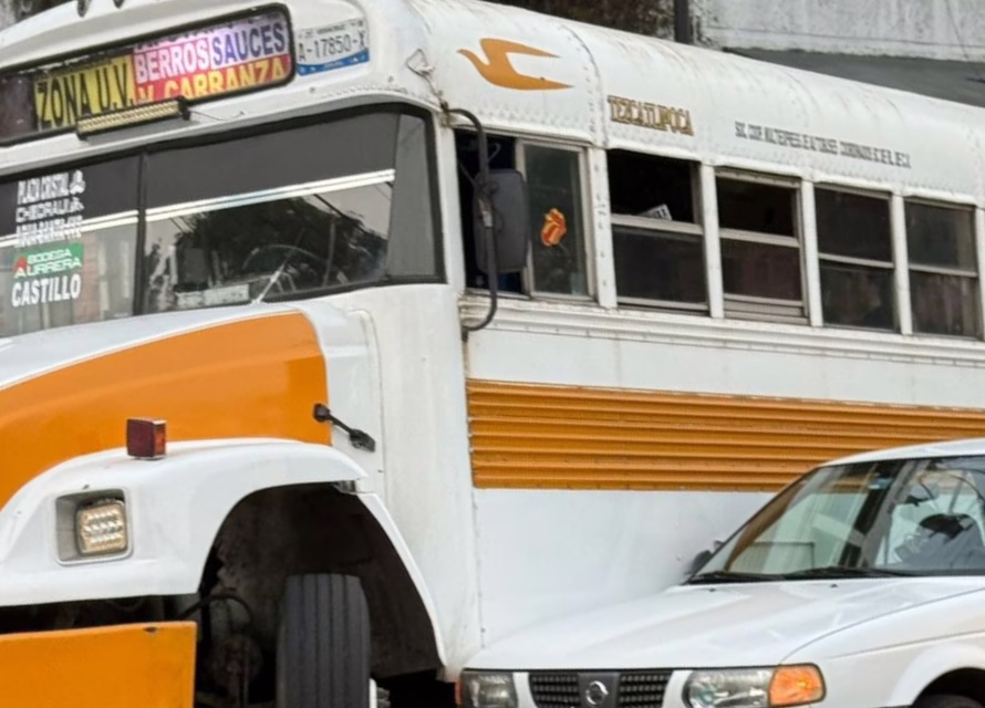 Fue en el carril con dirección al centro de la ciudad, en donde un automóvil marca Nissan tipo Tsuru color blanco y un camión de pasajeros se vieron involucrados en el percance.