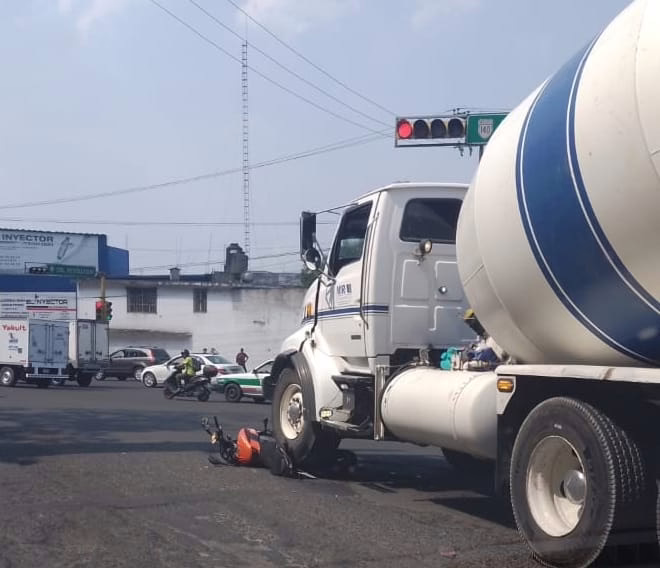 Xalapa, Ver. 15 de mayo del 2025.- Minutos antes de las 15:00hrs se registró un accidente de tránsito en la avenida Xalapa, esquina con Lázaro Cárdenas, en donde un camión tipo revolvedora impactó a un motociclista.
