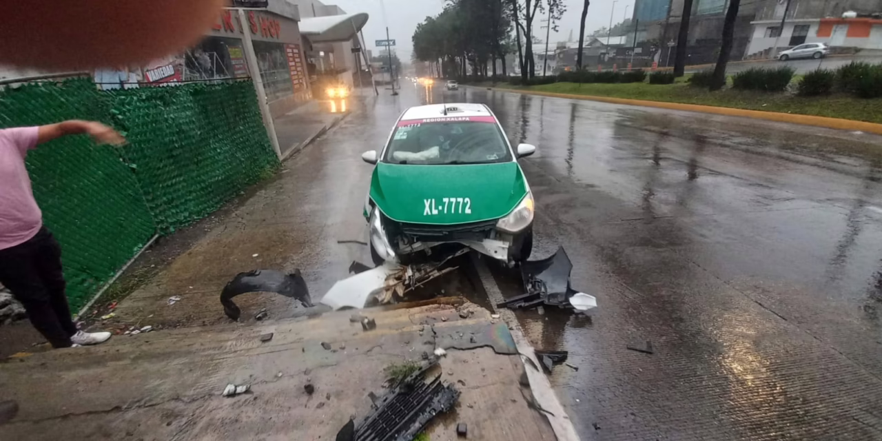 Xalapa, Ver. 16 de junio del 2025.- La mañana de este lunes el conductor de un taxi con número económico XL 7772 perdió el control de su unidad y se impactó contra la guarnición, cuando circulaba en la avenida Lázaro Cárdenas, antes de llegar a la avenida Pípila en esta ciudad.