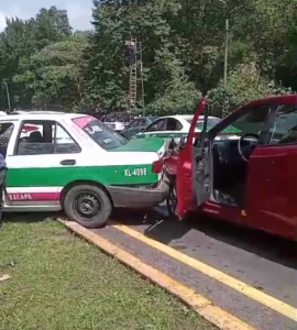 En el percance se vieron involucrados una camioneta marca Hyundai color blanca, un automóvil marca Ford color rojo y un taco con número económico XL – 4098. El cuál quedó sobre el camellón central.