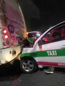 El percance ocurrió cuando el conductor de un taxi con número económico XL-5402 de impacto de manera violenta en la parte posterior de un camión del servicio urbano que circulaba por la misma vía.