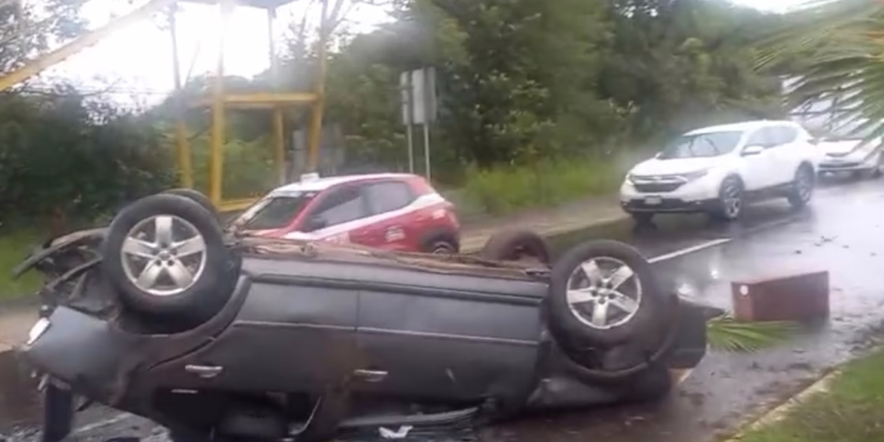 Fue en el carril con dirección al pueblo Mágico, en donde el conductor de un vehículo color gris perdió el control de su vehículo y terminó volcando.