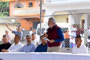 Posteriormente, el Alcalde inauguró el domo ubicado en la explanada central de la congregación, obra realizada con una inversión superior a un millón y medio de pesos, destinada al disfrute de las y los estudiantes, así como de todas las familias que habitan en la localidad.