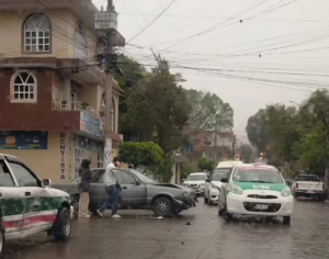 En este punto, los protagonistas fueron un vehículo Nissan tipo Tsuru y una unidad de taxi. El impacto en la esquina de ambas vialidades alertó a los vecinos, quienes solicitaron el apoyo de las autoridades viales.
