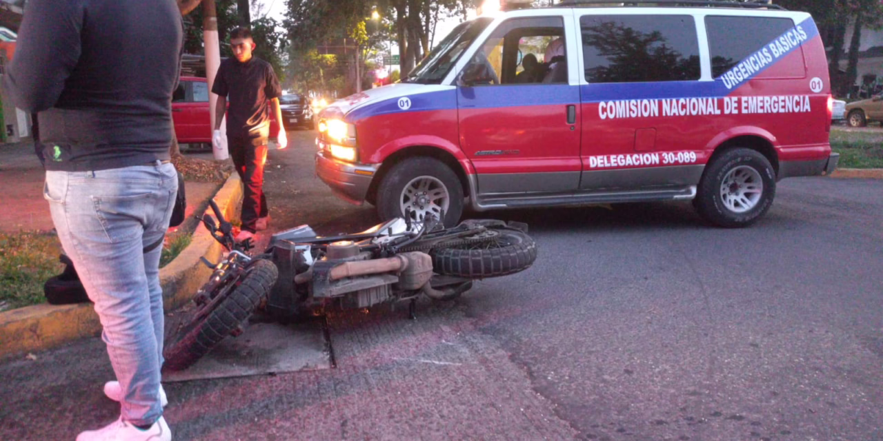 En el percance se vieron involucrados un taxi con número económico XL-6259 y una motocicleta, al lugar se trasladaron elementos paramédicos de la Comisión Nacional de Emergencia para brindarle los primeros auxilios al motociclista.