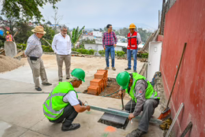 Finalmente, acudió al Andador Los Pinos, en la colonia Emiliano Zapata, sitio donde la Comisión Municipal de Agua Potable y Saneamiento (CMAS) construye un cárcamo de bombeo de aguas pluviales.