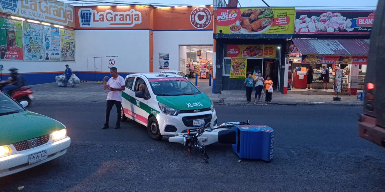 En el percance se vieron involucrados en un taxi con número económico XL 4878 y una motocicleta, los cuales se encuentran bloqueando parcialmente la vialidad.