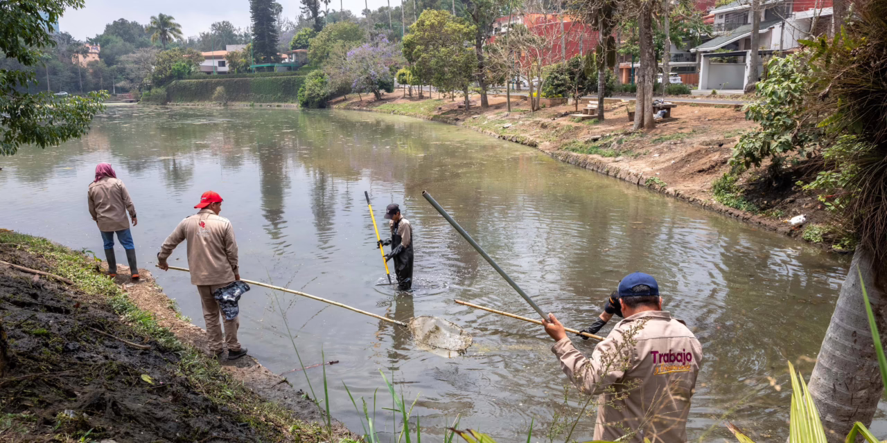 Xalapa, Ver.- Personal de la Dirección de Medio Ambiente, en coordinación con la Comisión Municipal de Agua Potable y Saneamiento (CMAS), continúa con los trabajos permanentes de limpieza en los lagos de Las Ánimas, con el fin de recuperar este cuerpo de agua.
