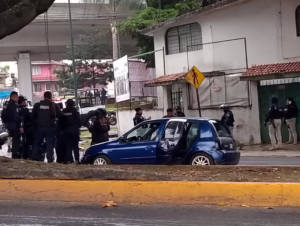 Tras un rápido operativo por parte de las corporaciones de Seguridad Pública del Estado, se logró la detención de los ocupantes de un vehículo marca Renault tipo Clio color azul en la avenida Maestros Veracruzanos.