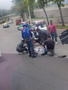 Xalapa, Ver. 26 de mayo del 2025.- Cerca de las 13:00hrs de este lunes, se registró un accidente de tránsito sobre la avenida Circuito Presidentes, a la altura del Velodromo, en donde un vehículo marca Renault color negro y una motocicleta se vieron involucrados en el percance.