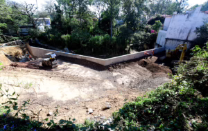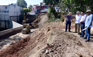 Como parte del recorrido, el alcalde Alberto Islas acudió a la calle Del Agua Dulce, en la colonia Vista Hermosa, donde se construye un muro de contención de 399 metros cúbicos en beneficio de 2 mil 200 personas. La obra que tiene un avance superior al 59 por ciento incluye muro de gavión y muro de concreto armado.