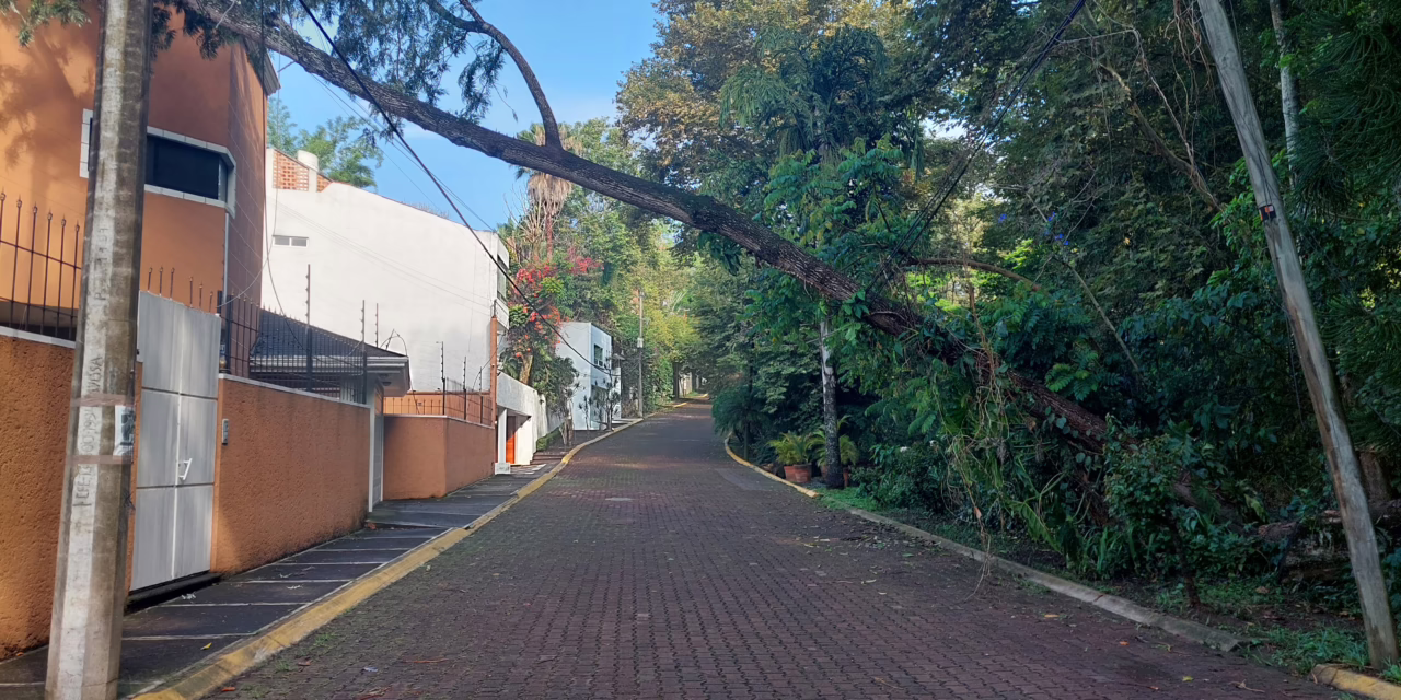 Xalapa, Ver. 28 de mayo del 2025.- La madrugada de este miércoles se registró la caída de un árbol sobre la calle Rafael Moreno Valle, es quina con Miguel Dorantes en la Colonia Valle Rubí Ánimas.