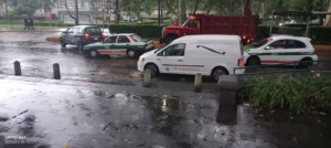 Los vehículos se encuentran bloqueando parcialmente la vialidad, tomen sus precauciones.