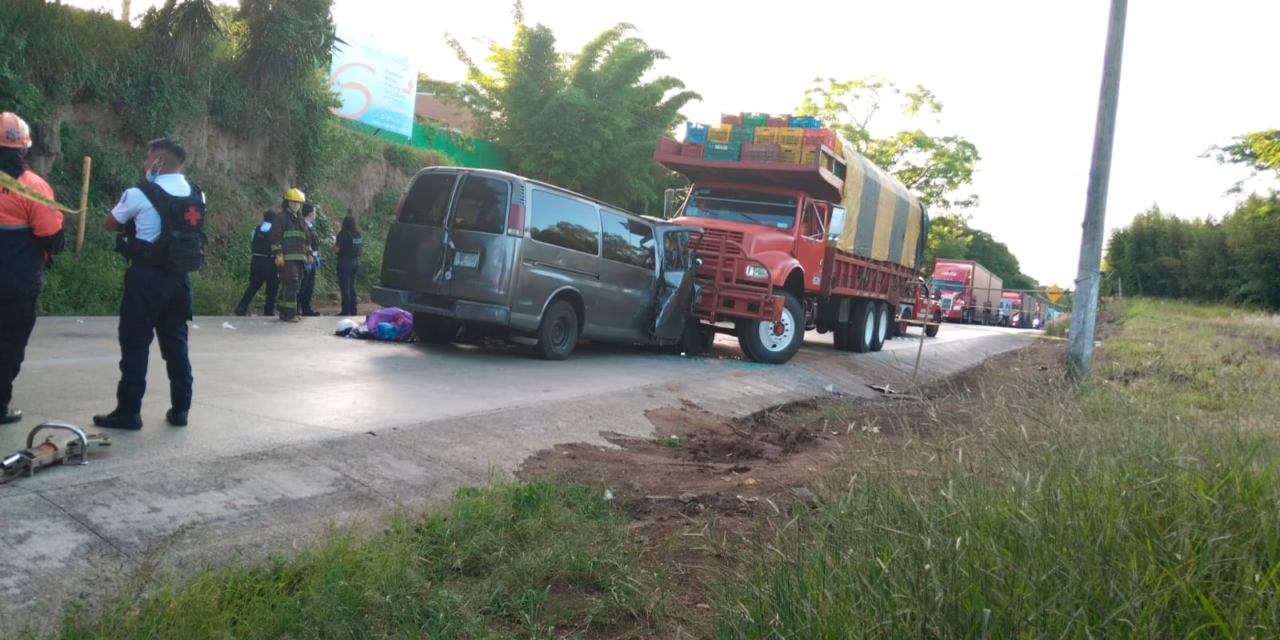 En el percance se vieron involucrados un camión de carga tipo Torton y una camioneta tipo Van de pasajeros, en donde viajaban dos personas y una de ellas perdió la vida debido al impacto.